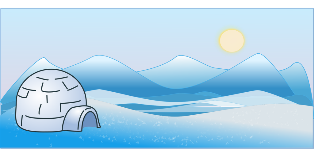 Nejprve si s dětmi zkuste postavit prostorové iglú z lega. Pak se přesuňte ke stolečkům, kde si děti nakreslí na modré papíry obrys iglú a vyplní ho otisky kostek lega s bílou barvou, jako by jej stavěly z kvádrů ledu. Po zaschnutí mohou dolepit obrázek Eskymáka, nebo ledního medvěda.